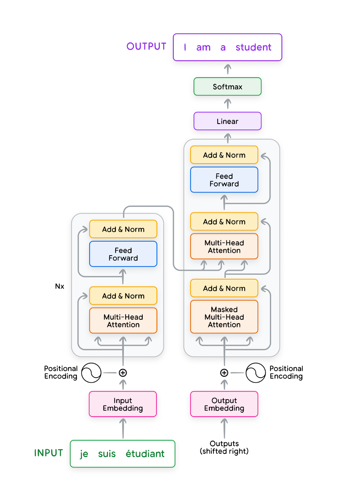 Transformer architecture์ 2017๋ ์ ๋ฒ์ญ ๋ชจ๋ธ ์ฌ์ฉ์ ์ํด ๊ตฌ๊ธ์์ ๊ฐ๋ฐ๋์๋ค. ์ด๊ธฐ ํธ๋์คํฌ๋จธ ์ํคํ ์ฒ๋ ์ธ์ฝ๋์ ๋์ฝ๋์ 2 ๋ถ๋ถ์ผ๋ก ๊ตฌ์ฑ๋์๋ค. ์ธ์ฝ๋๋ ์ ๋ ฅ ํ ์คํธ(์ ํ๋์ค์ด ๋ฌธ์ฅ)๋ฅผ ๋ณํํ๊ณ ๋ณํ๋ ๊ฐ์ด ๋์ฝ๋์ ์ ๋ฌ๋๋ค. ๋์ฝ๋๋ ์ด ํํ์ ์ฌ์ฉํ์ฌ ์ถ๋ ฅ ํ ์คํธ(์: ๋ฒ์ญ๋ ๋ฌธ์ฅ)๋ฅผ ์๊ธฐ ํ๊ท์ ์ผ๋ก ์์ฑํ๋ค. ์ ์ฒด์ ์ธ ๊ตฌ์กฐ๋ ์๋ ๊ทธ๋ฆผ๊ณผ ๊ฐ๋ค.