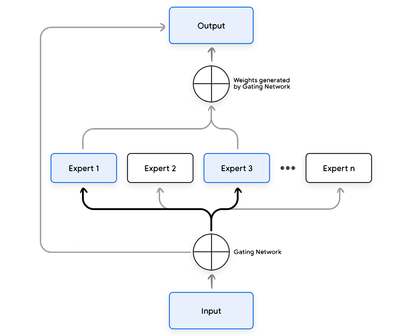 ์ด๋ ๊ฒ ๊ณ์ฐ๋ ํ๋ฅ ์ ์ ๋ฌธ๊ฐ๋ค์ ์ถ๋ ฅ์ ๊ฐ์ค์น๋ก ์ ์ฉ๋๊ณ , ๊ฐ์ค ํฉ(Weighted combination)์ด ์ต์ข ์์ธก ๊ฒฐ๊ณผ๊ฐ ๋๋ค. ์ด ๋ฐฉ์์ ๊ฐ๊ฐ์ ์ ๋ฌธ๊ฐ๊ฐ ํน์ ์ข ๋ฅ์ ๋ฐ์ดํฐ๋ ํ์ ์์ ์ ํนํ๋ ์ ์๊ฒ ํ๋ฉฐ ๋ชจ๋ธ์ ์ ๋ฐ์ ์ธ ์ฑ๋ฅ์ ํฅ์์ํค๋ ๋ฐ ๋์์ด ๋๋ค. ๋ํ ํฌ์ ํ์ฑํ(sparse activation)๋ฅผ ํตํด ํ๋์ ์ ๋ ฅ์ ๋ํด ์ผ๋ถ ์ ๋ฌธ๊ฐ๋ง ํ์ฑํ๋๋๋ก ํ์ฌ ๊ณ์ฐ ๋น์ฉ(computational cost)๋ ์ ๊ฐํ ์ ์๋ค.