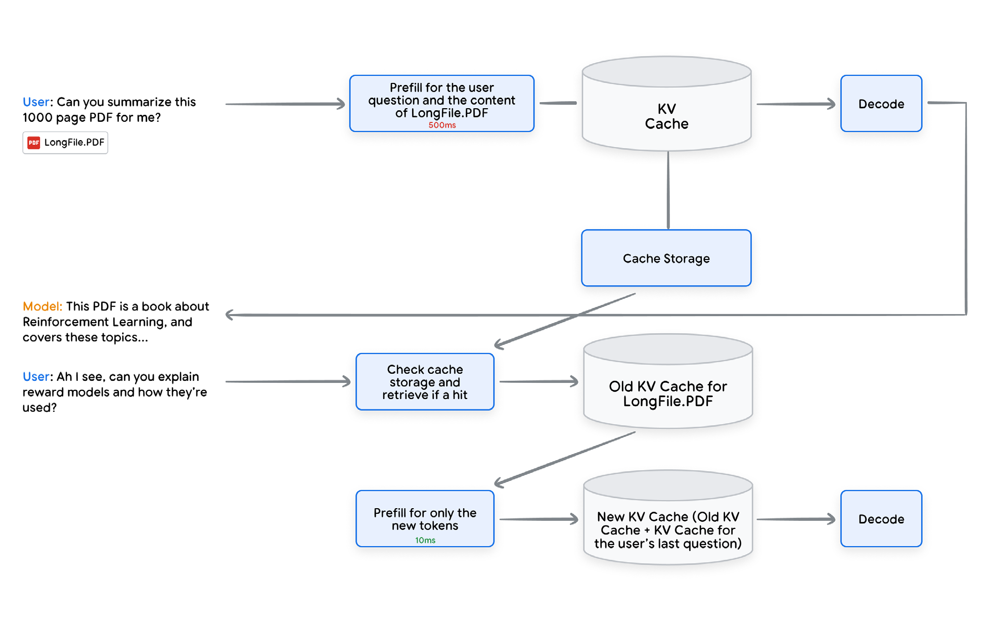 - ๋ ๋ฒ์งธ ์ฌ์ฉ์ ์์ฒญ : ๋ฌธ์๋ ๊ทธ๋๋ก์ด๊ณ , ์ง๋ฌธ๋ง ๋ฐ๋์์ผ๋ฏ๋ก, ๊ธฐ์กด KV ์บ์๋ฅผ ๋ถ๋ฌ์ ๋ฌธ์์ ๋ํ ์ฌ๊ณ์ฐ์ ์๋ตํจ โ ํฐ ์ฐ์ฐ ์๊ฐ๊ณผ ์ง์ฐ ์๊ฐ ์ ๊ฐ