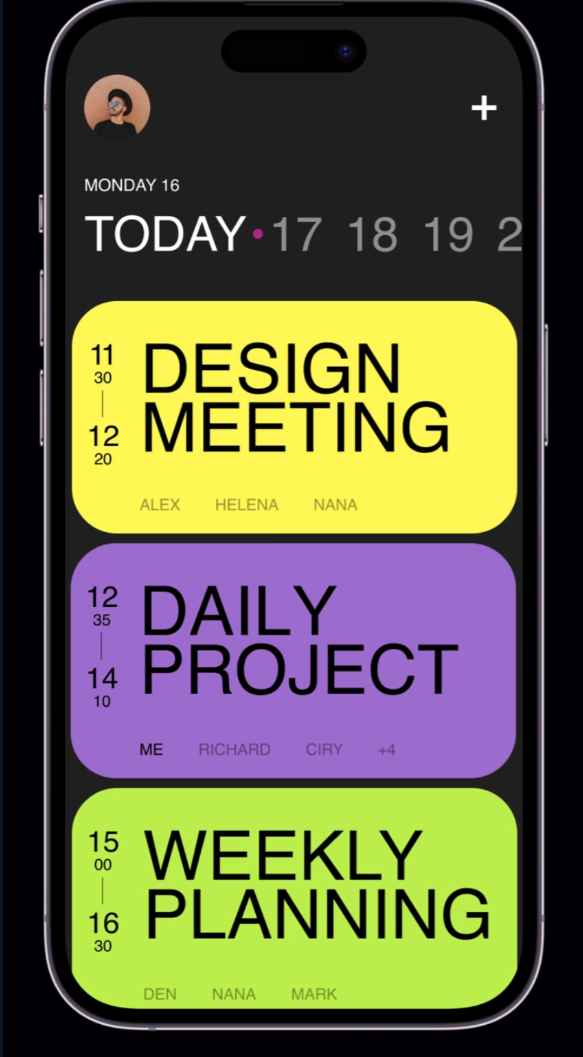 // ๋ ์ง, ์์๋ก "MONDAY 16" ํ์